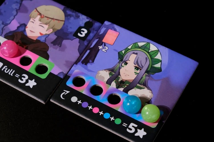 To score the pearls you collect, transfer them to villagers you recruit from the village, and strive to score their bonus goals too. After 5 rounds the player with the most points wins.