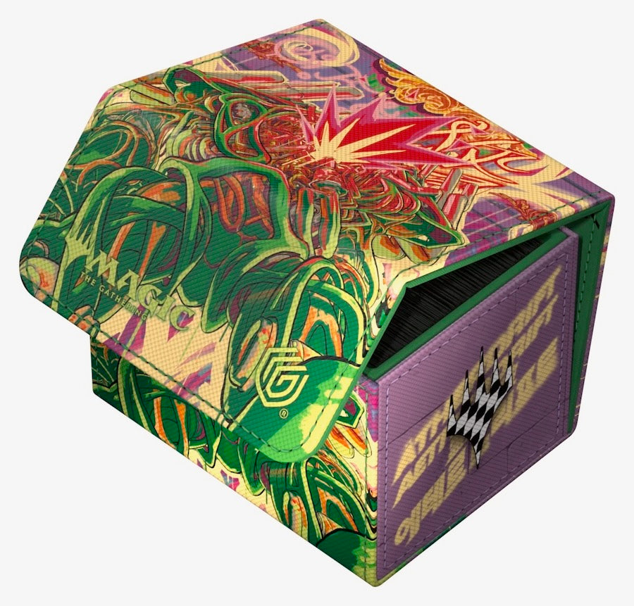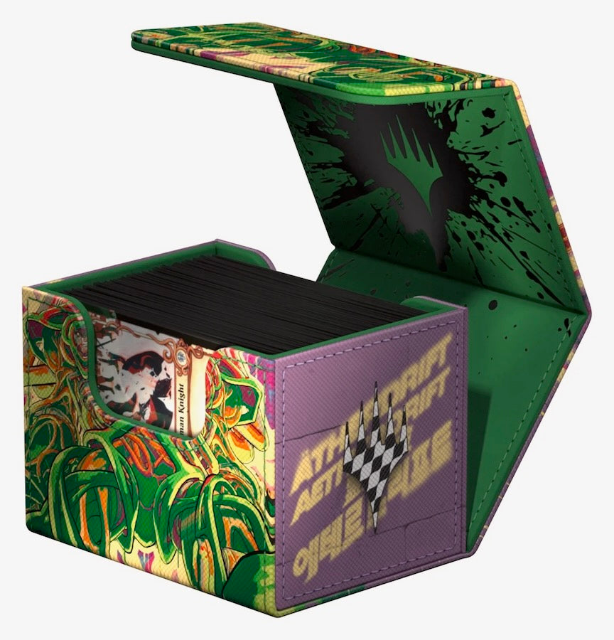 The Sidewinder 100+, made of durable Xenoskin material, holds up to 100 (double-sleeved) or 120 (single-sleeved) cards and is the perfect deck box for Commander/EDH decks. Printed in full color with officially licensed artworks from Magic: The Gathering's Aetherdrift, Ultimate Guard's Sidewinder deck boxes with their strong magnetic closure and quality microfiber inner lining are a safe and reliable storage place for MTG decks and individual trading cards.