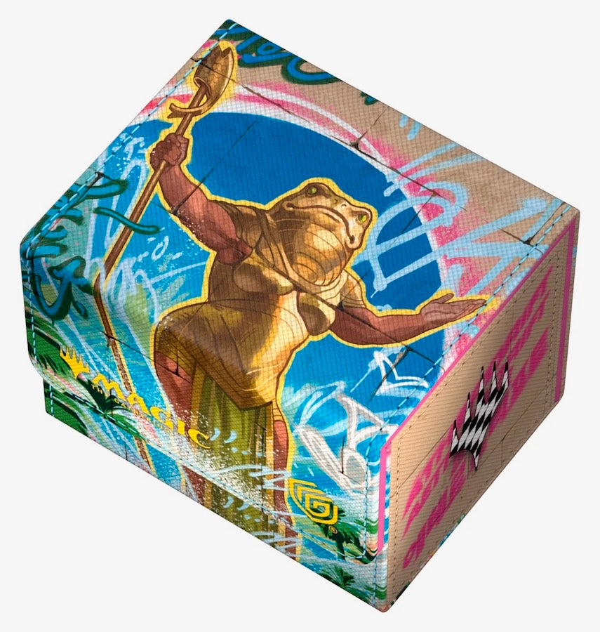 The Sidewinder 100+, made of durable Xenoskin material, holds up to 100 (double-sleeved) or 120 (single-sleeved) cards and is the perfect deck box for Commander/EDH decks. Printed in full color with officially licensed artworks from Magic: The Gathering's Aetherdrift, Ultimate Guard's Sidewinder deck boxes with their strong magnetic closure and quality microfiber inner lining are a safe and reliable storage place for MTG decks and individual trading cards.