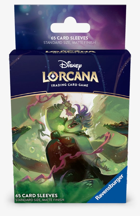 This scene and voice-stealing villain will make a splash on your next quest. Keep your cards safe from wear and tear while you play with these Card Sleeves which feature original Enchanted card art of Ursula from Disney Lorcana: Into the Inklands.