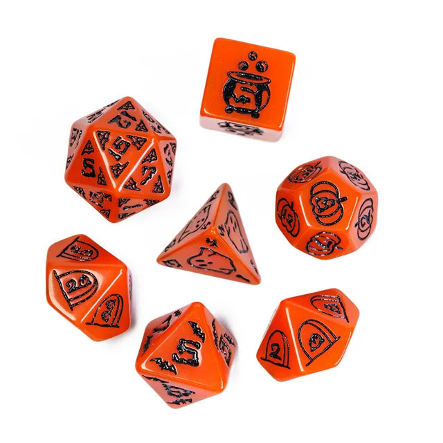 Roll this spook-tacular dice set featuring pumpkins, bats, cauldrons, gravestones and cobwebs – it's sure to put you under a spell. Trick-or-treat-yourself with these dice.