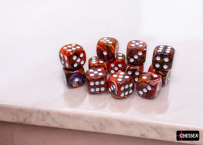 Each Set contains 12 Festive Symphony 16mm d6 dice with white pips.