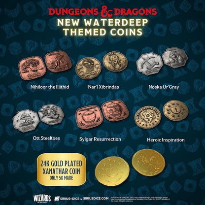 Discover the new themed coins offered in each pack featuring iconic creatures and abilities within Waterdeep. Now introducing Waterdeep currency coins to allow any player to be fully emersed in their next campaign.