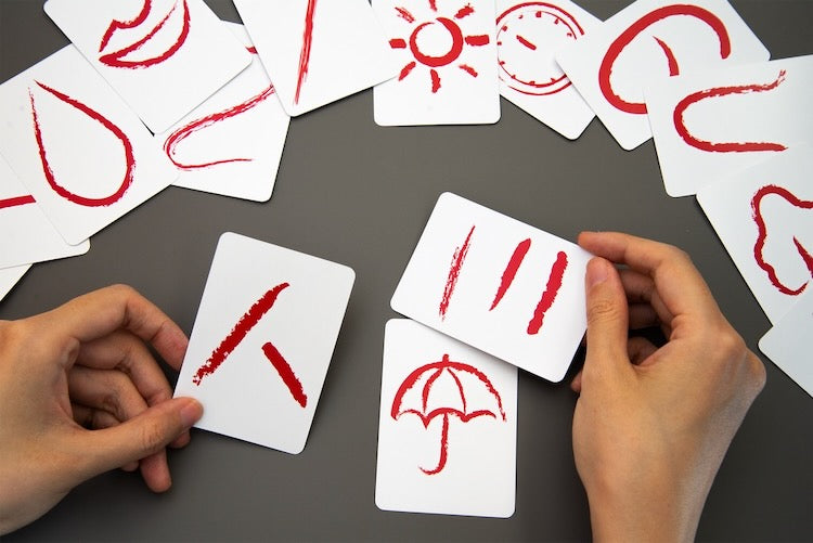 In front of you are 15 cards that you might be able to use. Upon closer inspection, these cards can be used to represent various things by changing their direction or hiding different parts of them.