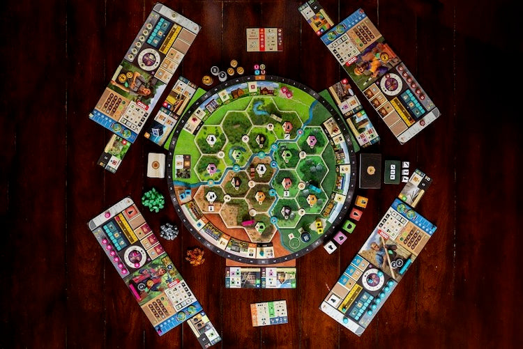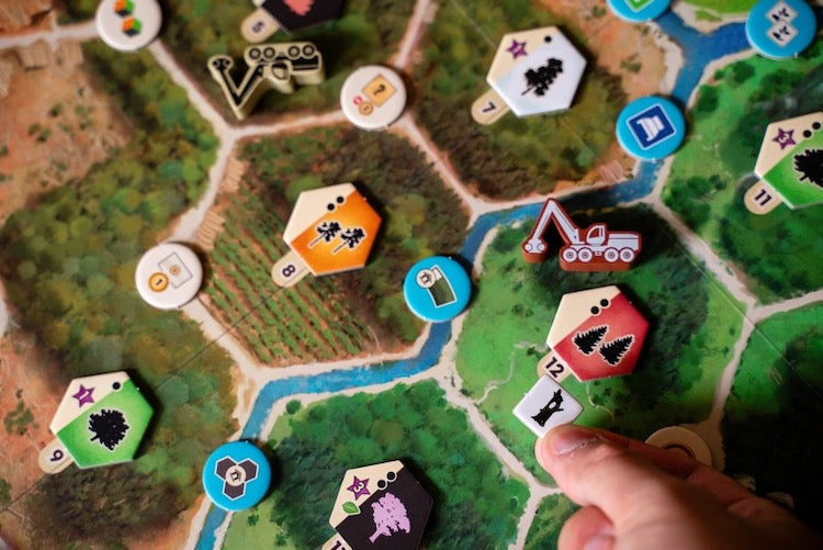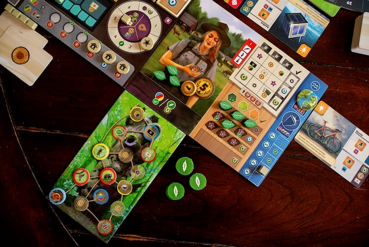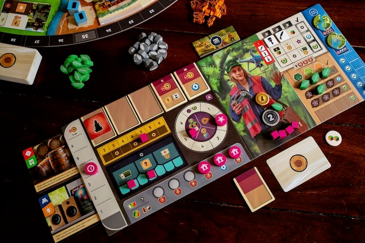 As a Eurogame focused on strategic action management, Forestry relies on a dual-worker system in which players control a harvester and a manager, each with distinct responsibilities. The harvester moves through the forest, felling trees to meet contract demands, replanting saplings, constructing infrastructure, and adjusting water retention to promote a healthy ecosystem. Meanwhile, the manager oversees resource collection, utilizes sawmill buildings, fulfills contracts, and optimizes wood processing. Players must carefully allocate action points between these workers to make sustainable choices, enhance infrastructure, and ensure the forest thrives while meeting demand.