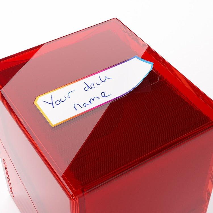 The Bastion 100+ XL is a very compact and rock-solid deck box to safely protect 100+ double-sleeved cards in Thick Inner Sleeves. Due to translucent materials and smart positioning of the closing flaps, the top or Commander card is fully visible from the outside without opening the box. The innovative secure click-lock mechanism protects your deck while still allowing easy access. The Bastion consists of 2 symmetrical parts that easily convert into a card pile and discard pile holder. It is perfect for a huge variety of trading card games. Thanks to its modular design, the Bastion fits perfectly into other Gamegenic products. It also comes with a write-on sticker for personalization. The Bastion is available in 10 different colors, including an exclusive mix & matched black/clear version.