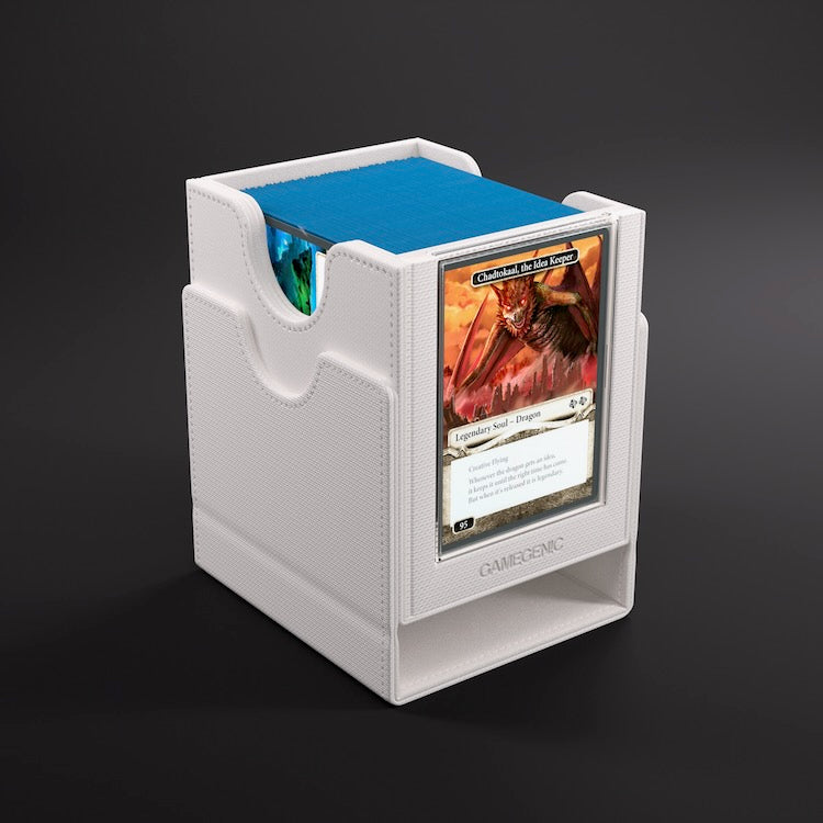 The Sidekick PRO holds 100 double-sleeved cards in extra Thick Inner Sleeves. It can also fit 100 regular double-sleeved cards and has extra room for token cards. This premium box is also equipped with our highly rated convertible system: The completely removable cover clips onto the bottom, saving precious space on the gaming table. The Sidekick PRO is available in all 5 colors used in Magic: The Gathering