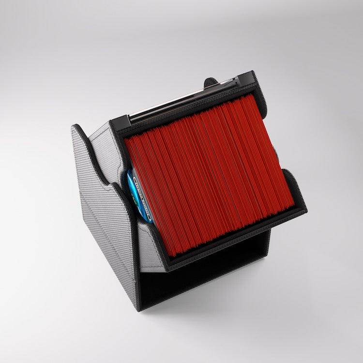 The Squire PLUS holds 100 double-sleeved cards in extra Thick Inner Sleeves. It can also fit 100 regular double-sleeved cards and has extra room for token cards. This premium box is also equipped with our highly rated convertible system: The completely removable cover clips onto the bottom, saving precious space on the gaming table.