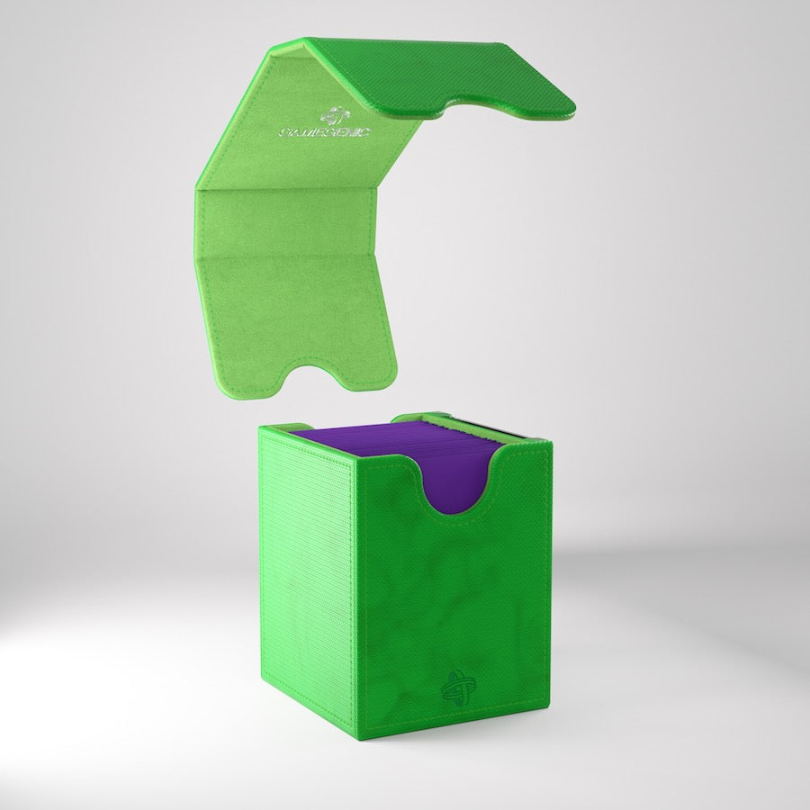 The Squire PLUS holds 100 double-sleeved cards in extra Thick Inner Sleeves. It can also fit 100 regular double-sleeved cards and has extra room for token cards. This premium box is also equipped with our highly rated convertible system: The completely removable cover clips onto the bottom, saving precious space on the gaming table.
