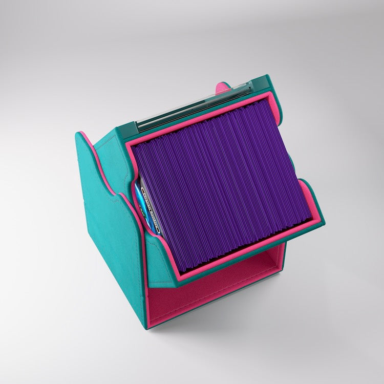 The Squire PLUS holds 100 double-sleeved cards in extra Thick Inner Sleeves. It can also fit 100 regular double-sleeved cards and has extra room for token cards. This premium box is also equipped with our highly rated convertible system: The completely removable cover clips onto the bottom, saving precious space on the gaming table.