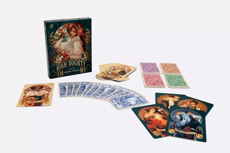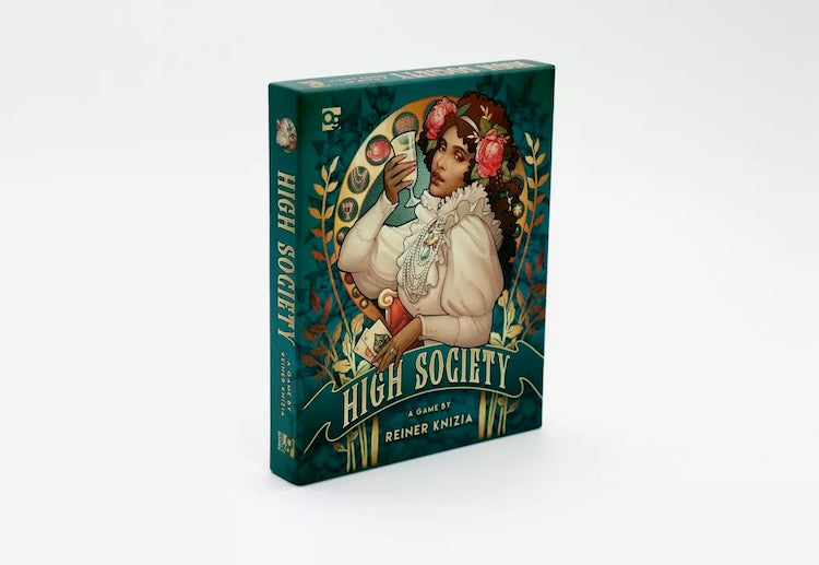 In Reiner Knizia's classic auction game, players must bid against each other for life's luxuries, using their vast wealth to acquire symbols of status. But beware over-indulging, for the player at the end of game with the least money cannot possibly be considered a member of high society. This new edition of High Society features 16 stunning Art Nouveau-inspired illustrations by Medusa Dollmaker.