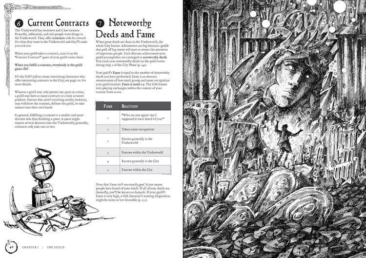- The game has robust procedures. Characters adventure in the Underworld, rest in roleplaying-driven camping scenes, and plot long-term schemes in the City at the center of the Wide World.