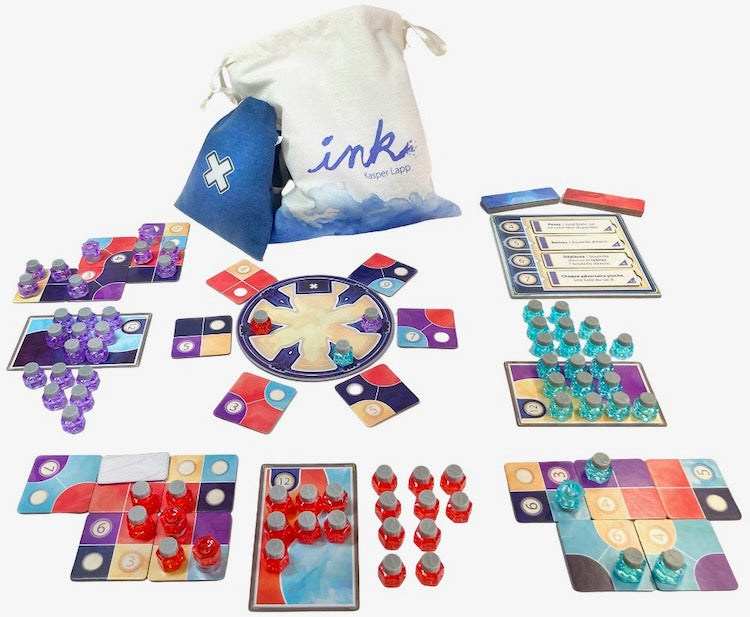 INK is a colorful game that promises to be a feast for the eyes! Who will be the first to place all their ink bottles on their board? Behind a simple mechanic that flows like ink lies a game of surprising depth! By discovering the multiple effects of combos, you'll be able to appreciate its full replayability.