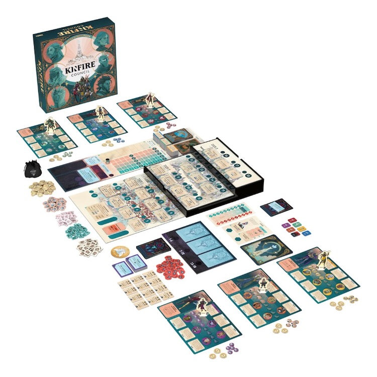 Kinfire Council is a competitive game of strategy and politics. As a member of the Council, you've been charged with rebuilding the great city of Din'Lux and defending it from the dangers of the Starless Nights.
