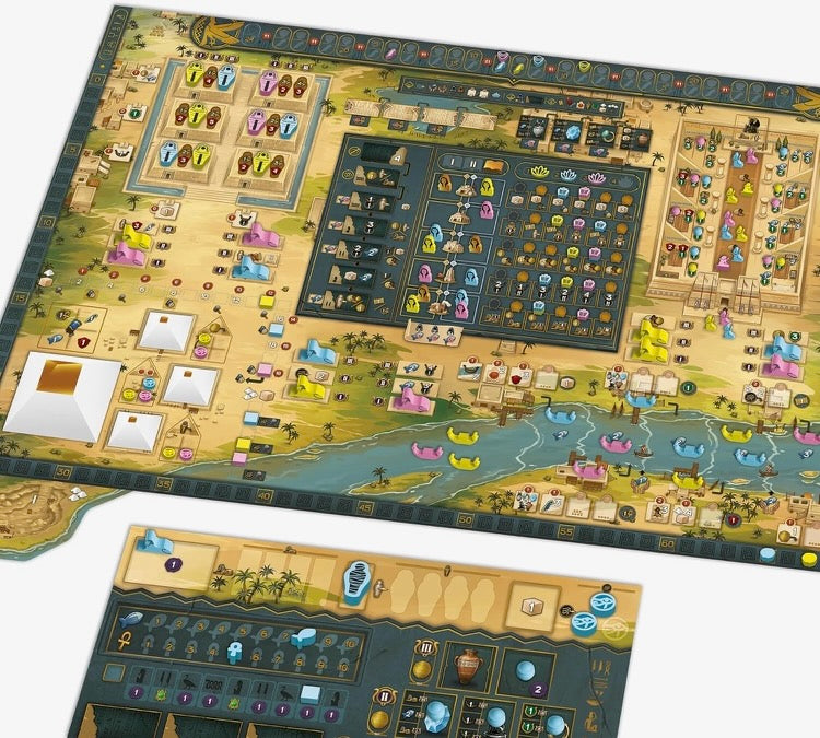 Throughout three eras, by means of a novel selection of actions that combine worker placement and tile drafting, players choose on each turn which area of Egyptian life and culture they wish to develop. Players must attempt to obtain the greatest number of prestige points in each era since only the one who manages to achieve the most prestige will take the victory.