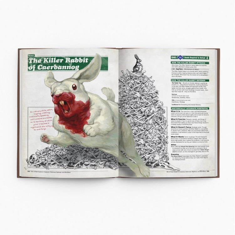 Betwixt these firm yet supple covers, one shall find everything one needs to experience the joy of Mediaeval study, from character creation and factions to ready-to-run quests and monsters – including the French! One need not be familiar with Monty Python’s work, nor is experience with ‘role-playing games’ required. If you have experience with the latter, you are probably too silly a person to participate and should stop reading immediately.