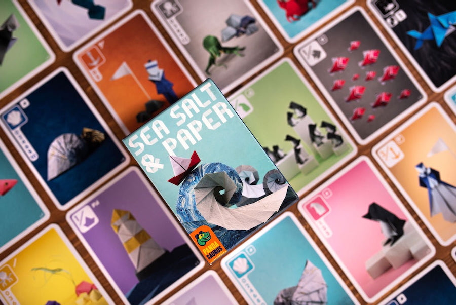 A few delicately folded papers and a whole marine universe comes to life. Create your own ocean. Assemble your hand, place cards for their effect, and decide if you want to end the round. But you have to choose: stop the round immediately or give the others an extra turn to try to widen the gap. Is it worth taking the risk?