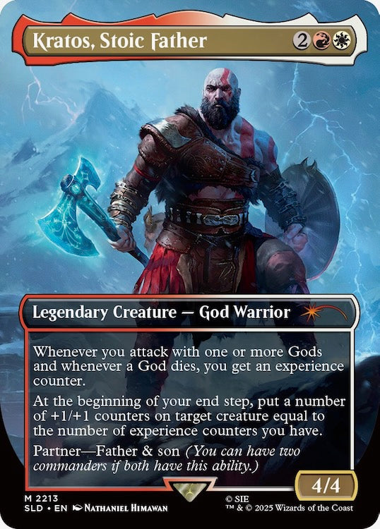 After carving a path of vengeance through Mt. Olympus, Kratos wandered for many years—eventually making his way to the mysterious Norse lands. Following the death of his wife, Kratos and his young son, Atreus, embark on a journey to honor her final wishes, entangling them with the Aesir gods and leading them on a path to eventually face the cataclysmic event of Ragnarök. Empower the father and son duo on the battlefield through Teferi’s Ageless Insight as Mimir (the reversible treatment allows you to play either Mimir-in-a-tree or Mimir-as-a-head) and Iroas, God of Victory given form as the indomitable warrior, and “Freya, Queen of the Valkyries.”