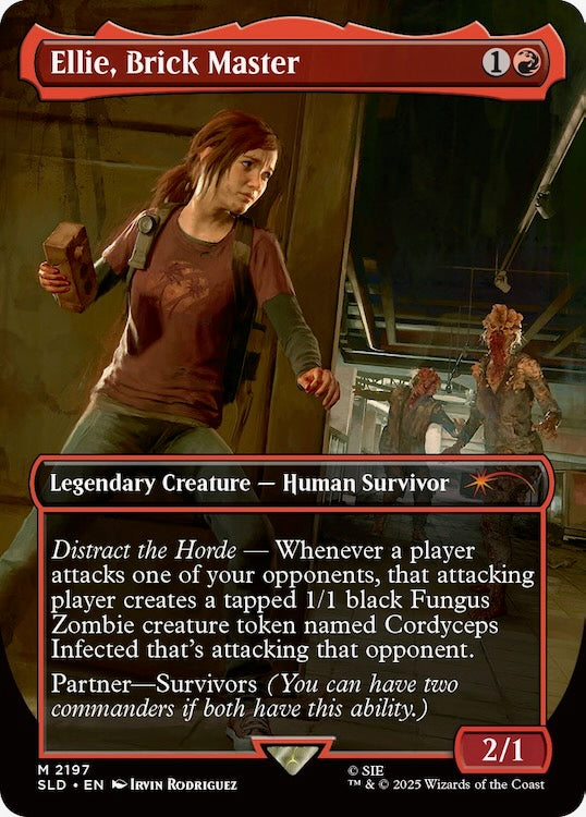 In 2013, The Last of Us introduced fans to Ellie and Joel making their way through a world wholly changed by an unnatural disaster. Now, the last pair standing has come to Magic: The Gathering with two new-to-Magic cards—exclusive to this Secret Lair drop—designed to perfectly encapsulate these gaming icons, plus a look at two key moments from the game, and a Cordyceps Infected token at which a brick can be thrown.