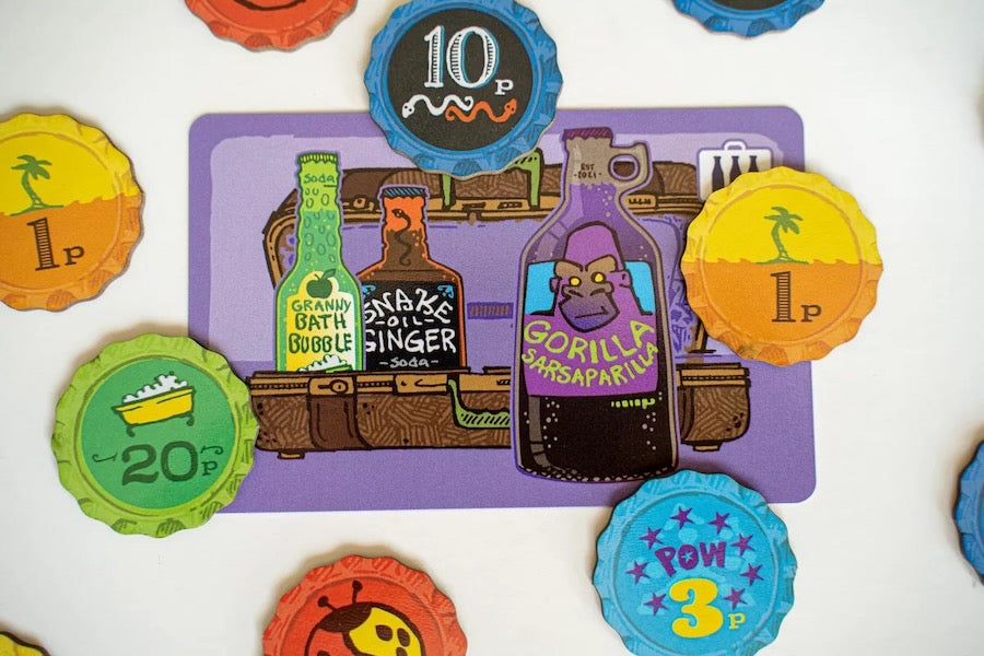 Each round, one player takes a turn in the role of a border guard while the other players act as travelers. In a quest to acquire coveted carbonation and its accompanying bottle caps, the border guard tries to confiscate as many sodas as possible while only the cleverest travelers will sneak across with their fizzy contraband. After each player has been the border guard (twice in a 3-4 player game, once in a 5-8 player game), the game ends and whoever has the most bottle caps wins!