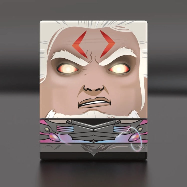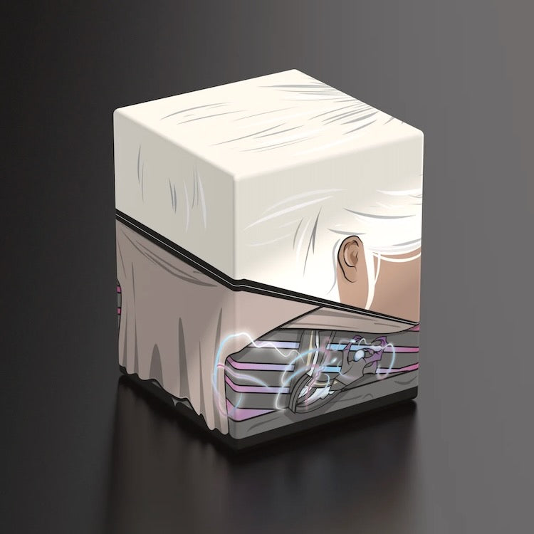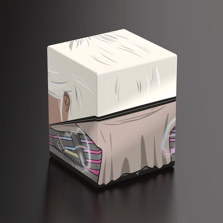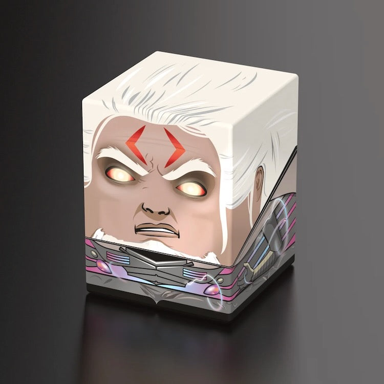 Collectible box for storing your deck, tabletop gaming accessories, and/or collectibles. The Tezzeret Squaroe from the Magic: The Gathering edition holds up to 100 cards in double protective sleeves if used as a deck box. Squaroes are made from 78% renewable recources.