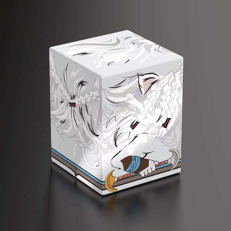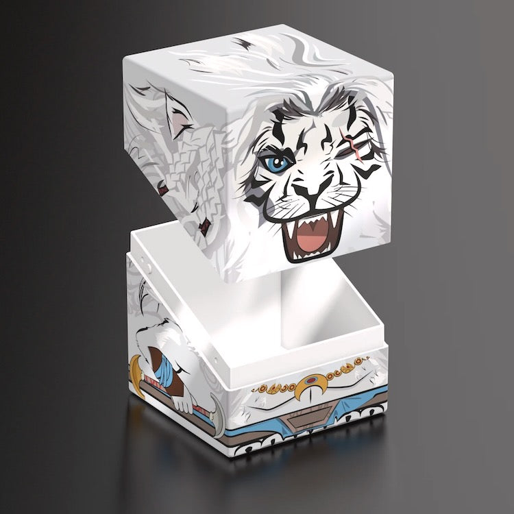 Collectible box for storing your deck, tabletop gaming accessories, and/or collectibles. The Ajani Squaroe from the Magic: The Gathering edition holds up to 100 cards in double protective sleeves if used as a deck box. Squaroes are made from 78% renewable resources.