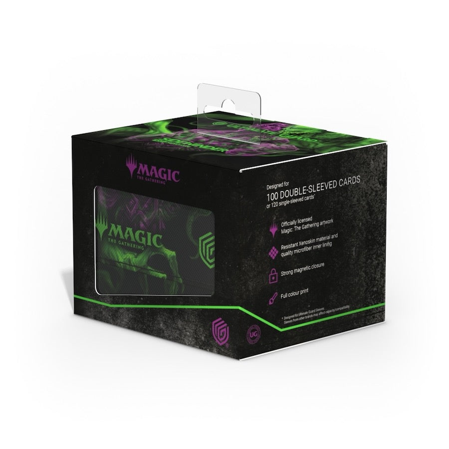 The mysterious Double Exposure artworks from Duskmourn: House of Horror not only delight in the cards from Magic: The Gathering's new set, but also in our Sidewinder deck boxes! Will you join the Rescue Squad around Tyvar, Zimone, Kaito and The Wandering Rescuer? Will you side with the legendary villains in the never-ending haunted house? Or do you just think Kona, Rescue Beastie is cute? The choice is yours! Our Sidewinder 100+ Xenoskin are printed in full color with officially licensed Magic: The Gathering artwork. The deck boxes are made of durable Xenoskin material and have a high-quality microfiber inner lining. The sidewinders offer space for 100 double-sleeved or 120 single-sleeved cards - and are a perfect match for the Omnihive 1000+ Xenoskin from the Duskmourn: House of Horror series!