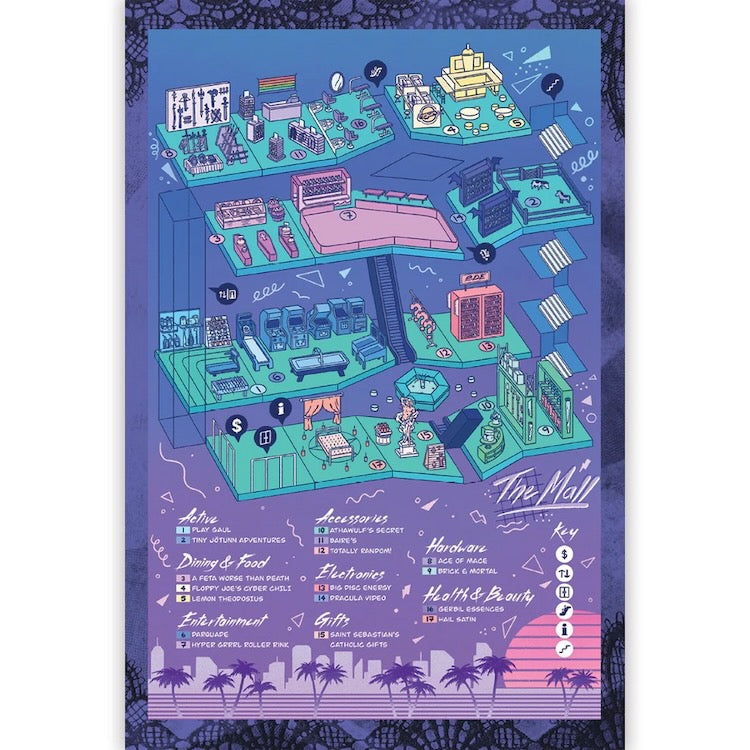 - Detailed mall setting: 2 maps, 17 stores, and 24 NPC clerks.