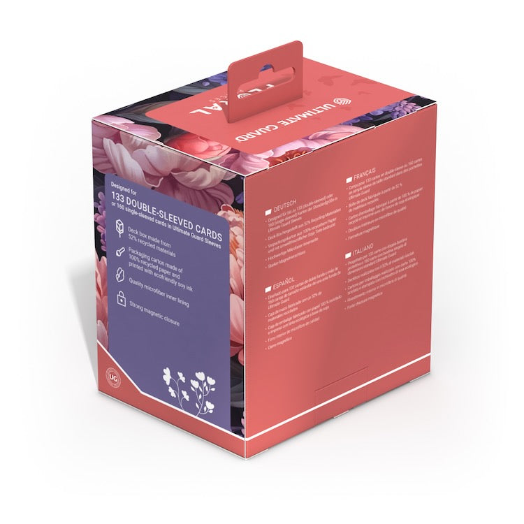 The Sidewinder 133+ Xenoskin is a premium TCG deck box, offering exceptional card protection with its durable Xenoskin material, microfiber inner lining, and strong magnetic closure — all while providing easy and convenient access to the cards inside. Designed to hold 133 double-sleeved trading cards in Ultimate Guard sleeves, our "Floral Places" Sidewinder is the perfect deck box for TCGs.