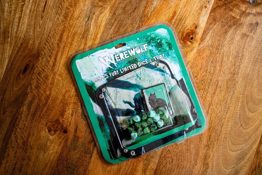 Enrich your Werewolf experience with the Luna’s Fury Limited Dice & Tray Accessory Pack. The multi-colored dice and full-color dice tray evoke the spirit and fur of the Garou. The 5 Form Cards help you and your troupe distinguish glabrou from crinos and remind you what each form does.