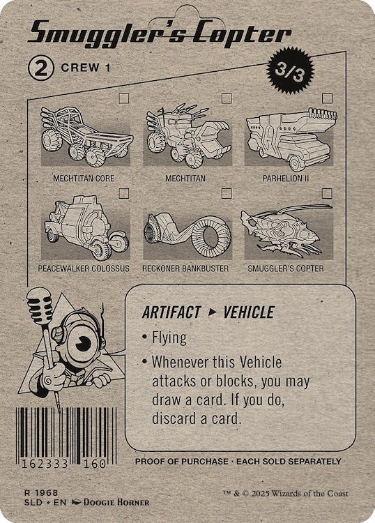 Buckle up, speedsters! An all-new set of Aether Drifters race cards are zooming from the Ghirapur Grand Prix racetrack to your front door. These high-octane, reversible cards feature some of Magic's most action-packed vehicles with all-new toy car art. So, blast your turbo boosters and catch 'em before they speed away.