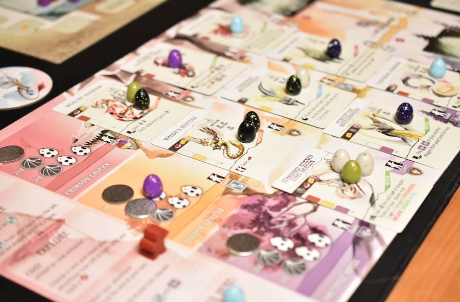 You are an amateur dracologist in the world of Wyrmspan, a place where dragons of all shapes, sizes, and colors roam the skies. Excavate a hidden labyrinth you recently unearthed on your land and entice these beautiful creatures to roost in the sanctuary of your caves.